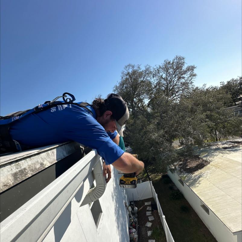 Reattaching Gutter Downspout On Building Project in Tampa FL 33611